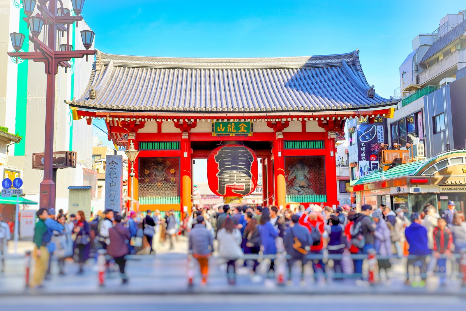 Al cruzar la puerta Kaminarimon, con su enorme linterna roja, el ambiente cambia de inmediato.