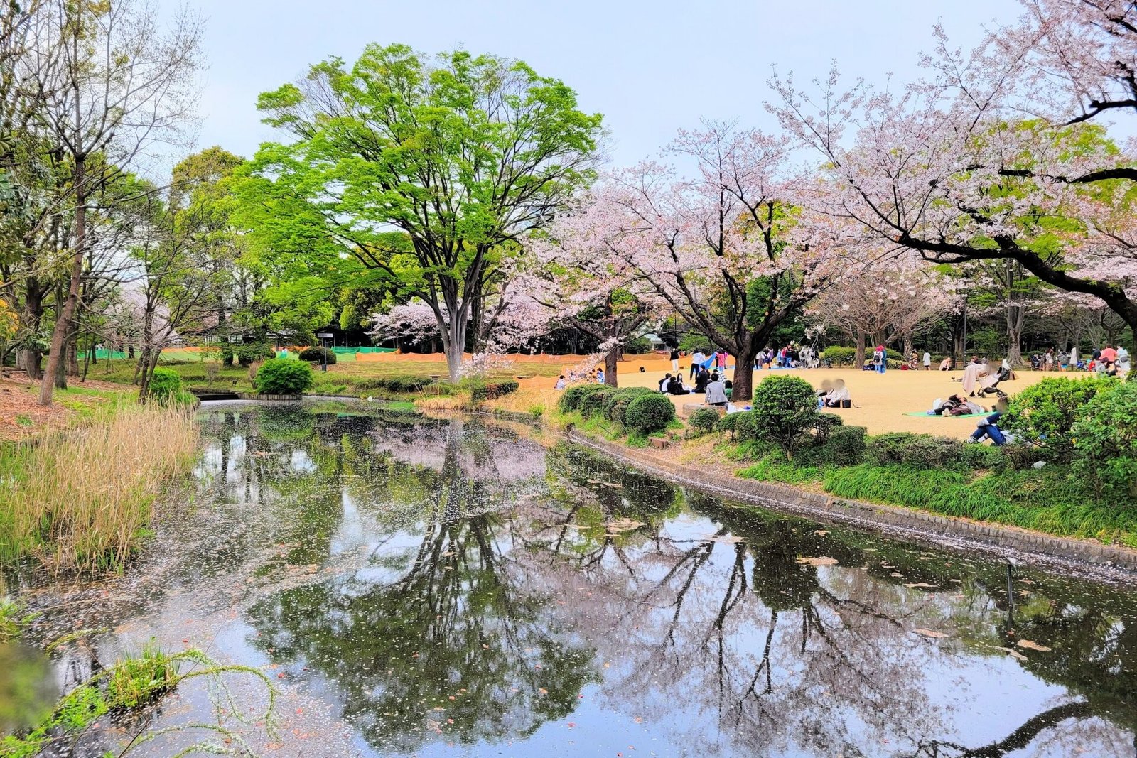 En primavera, durante el hanami, se llena de gente celebrando bajo los cerezos.