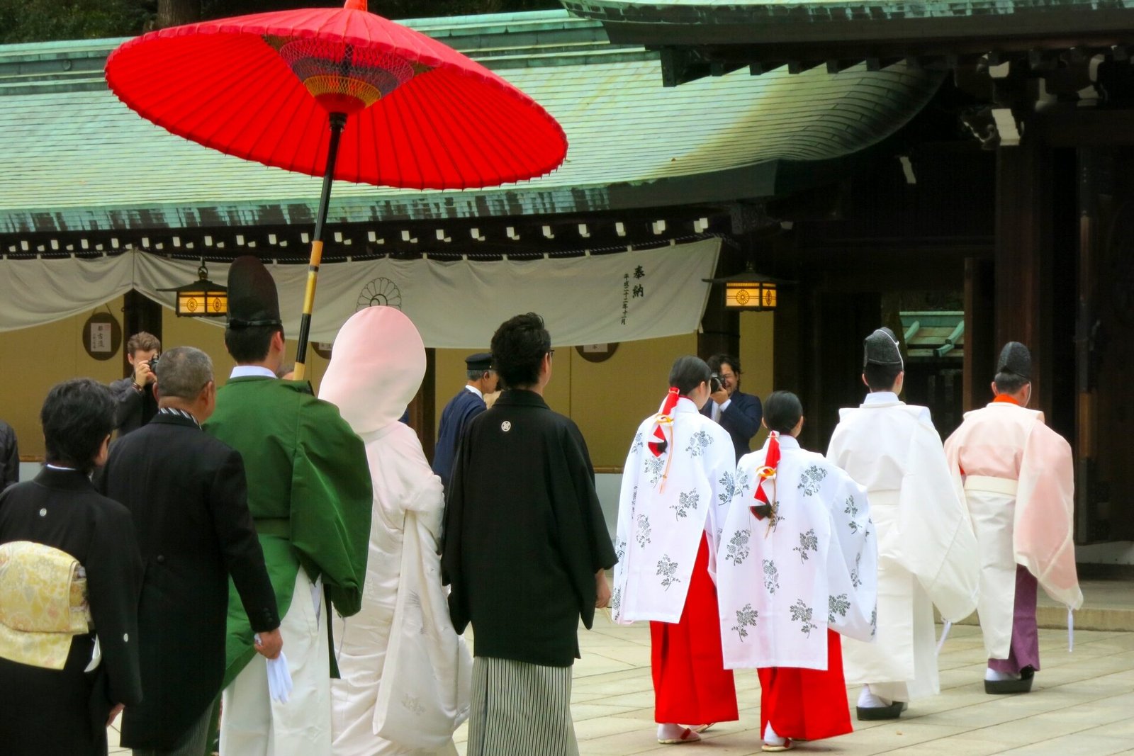 Es común ver bodas tradicionales sintoístas, con kimonos blancos y rituales solemnes.