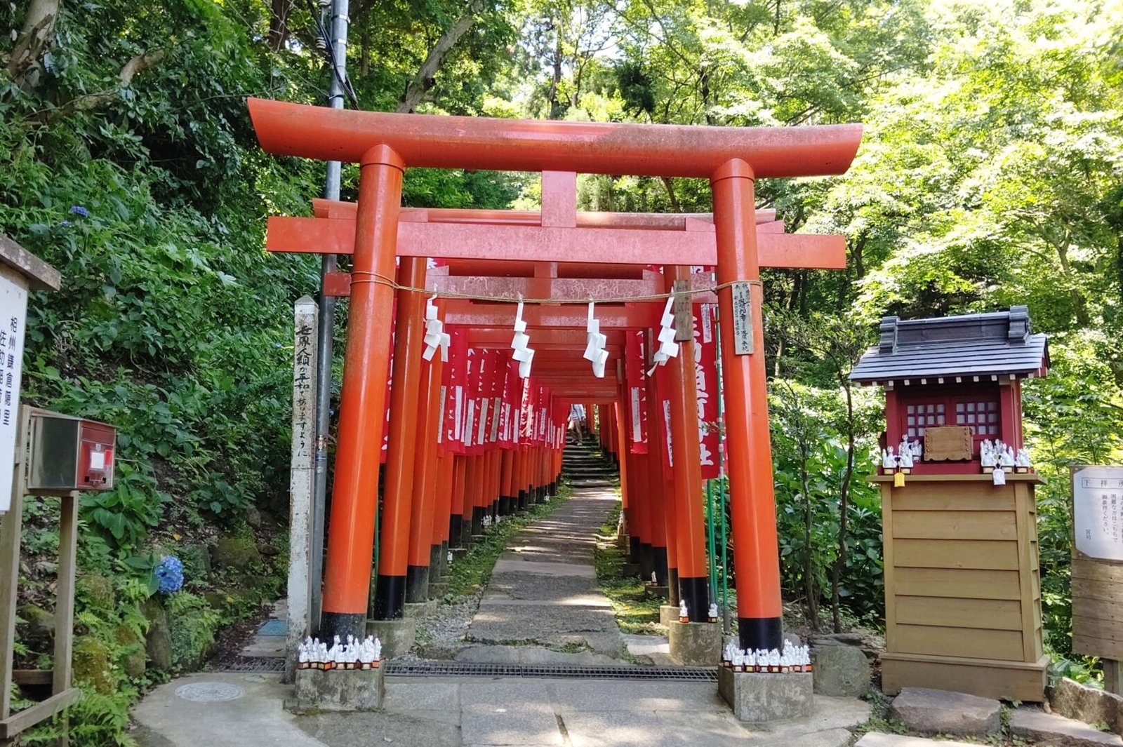 Su rasgo más llamativo son los pequeños torii rojos alineados y las numerosas estatuas de zorros, mensajeros de Inari. El ambiente es íntimo y fotogénico.